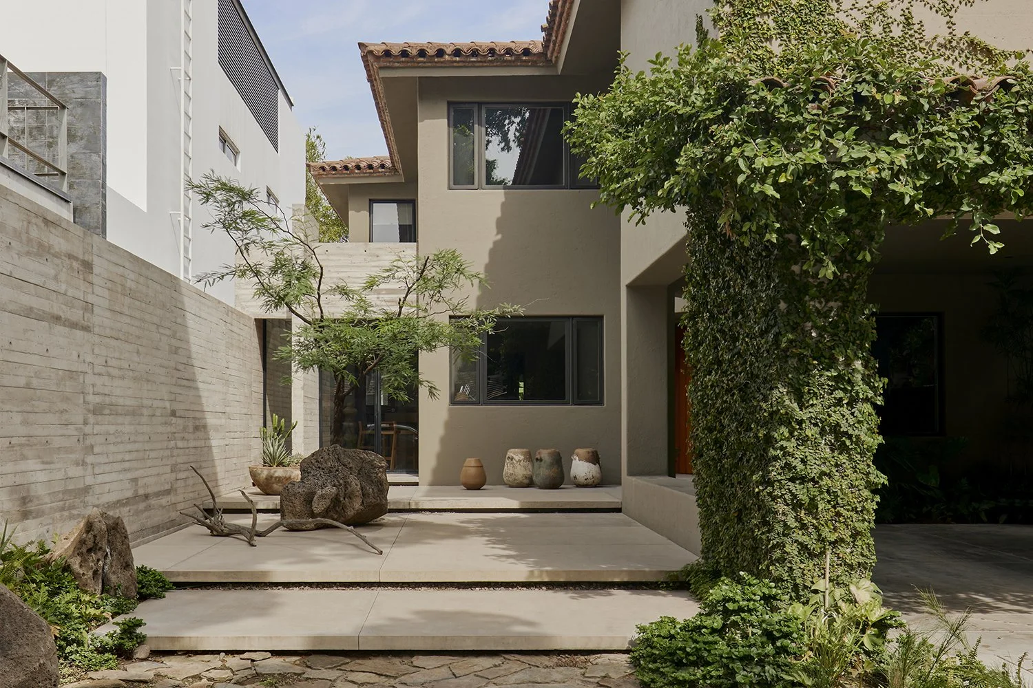 Intervinimos el acceso y cocina de una residencia unifamiliar de 1993 con la intención de dar amplitud y aires de renovación a una muestra modesta, pero atinada de arquitectura mexicana. Determinados a usar el concreto como material principal del proyecto, buscamos generar contraste, comunión y diálogo entre lo viejo y lo nuevo.