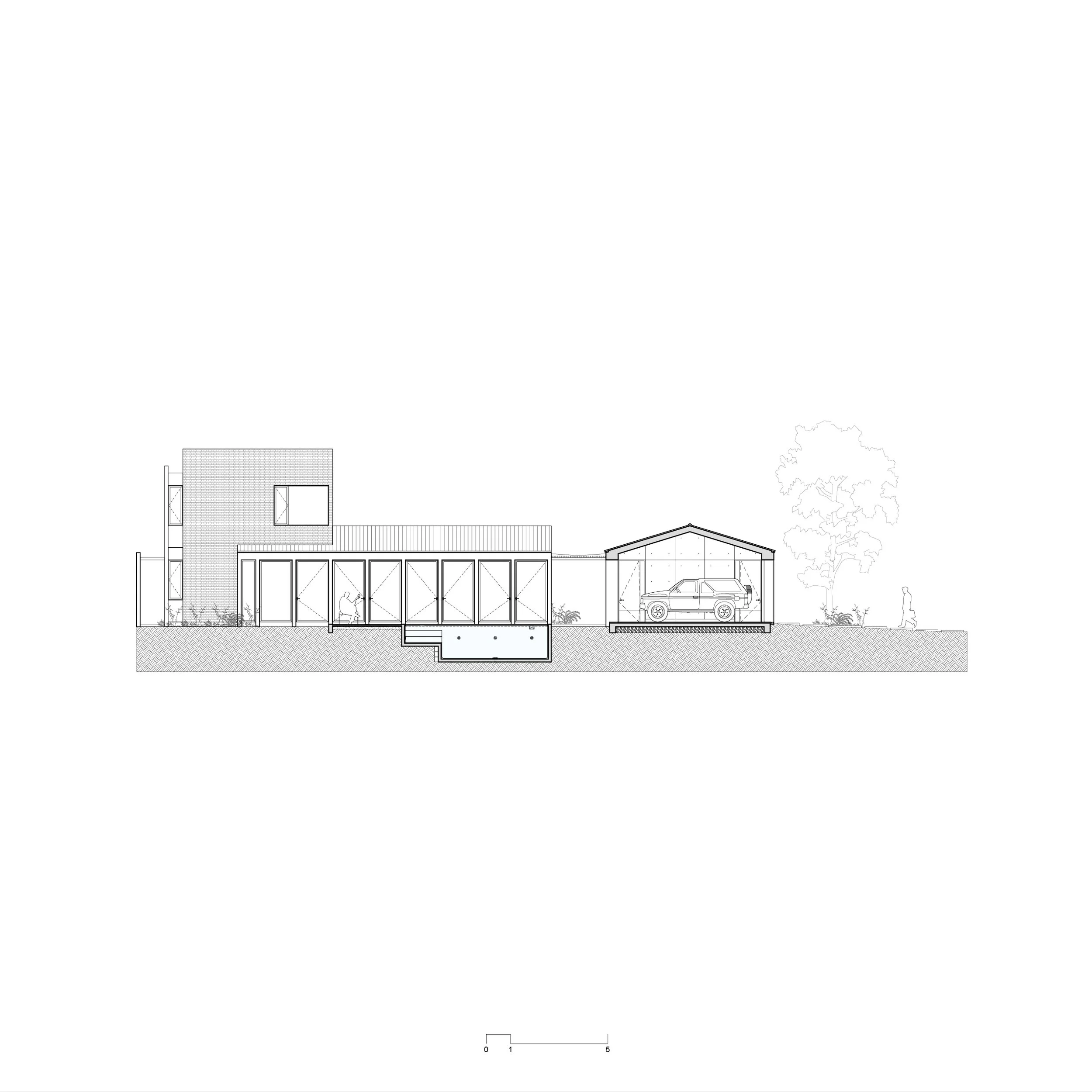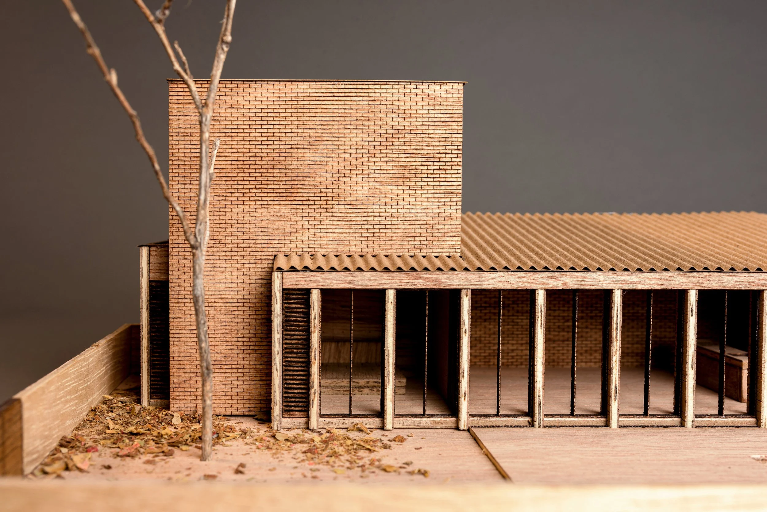 El proyecto se desplanta sobre un predio convencional, rectangular de 325 m2, en un fraccionamiento ubicado en Culiacán, Sinaloa. Colinda al norte y al oeste con otras construcciones, al sur la conexión con la vialidad y al este, con un camino peatonal arborizado parte del fraccionamiento, lo cual favorece el desplante en “L” buscando contener un gran jardín y orientar las vistas del proyecto hacia la masa verde de la copa de los árboles.